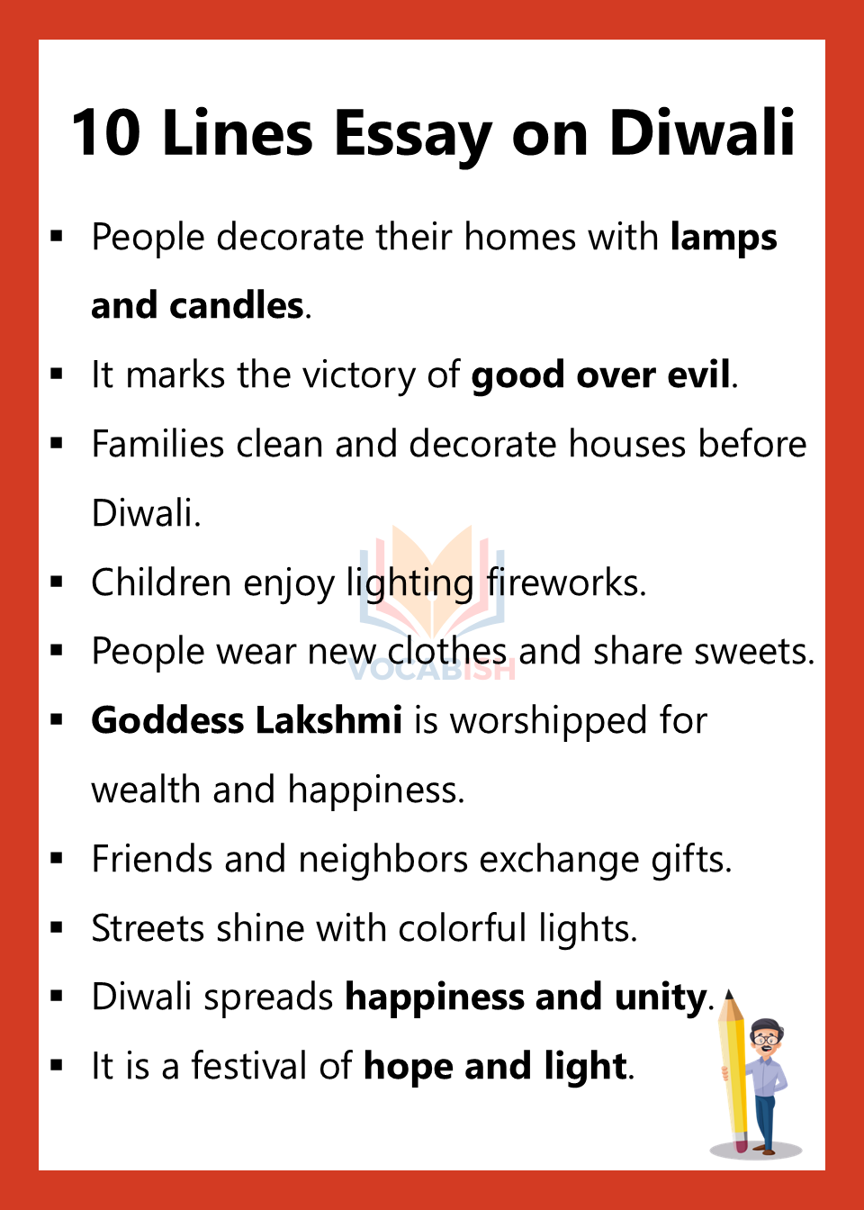 Learning to write short essays helps improve your English writing skills and boosts your vocabulary. In this article, you’ll find 10-line essays on 30 important topics that are easy to read and understand. Each topic is written in simple language so that learners can quickly grasp ideas and use them in writing or speaking.