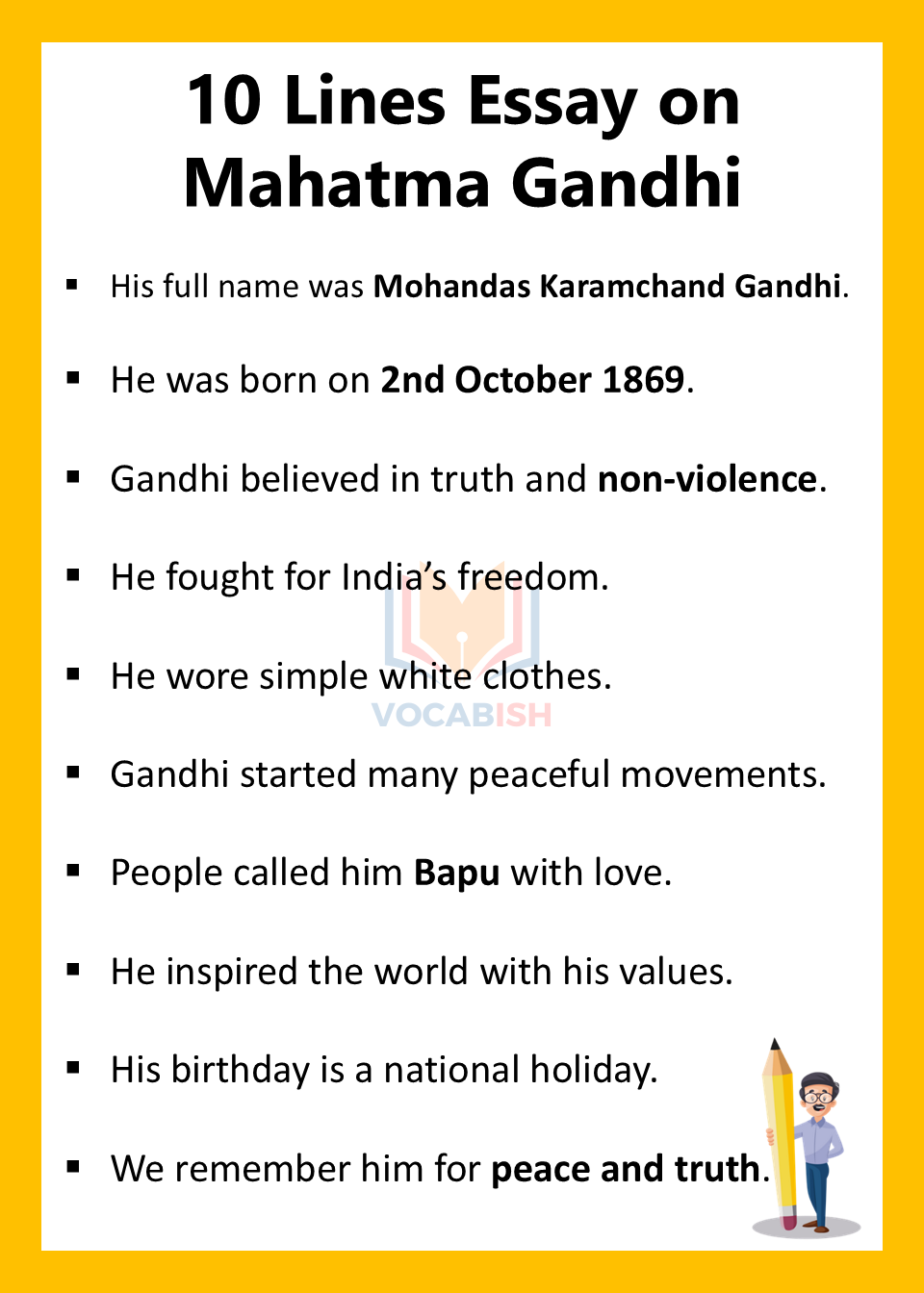 10 Lines Essay on Mahatma Gandhi