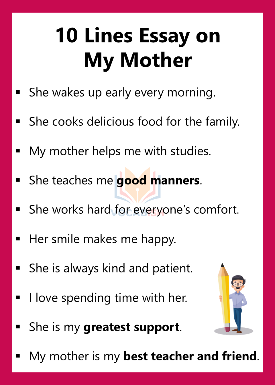 - My mother is my best teacher and friend.