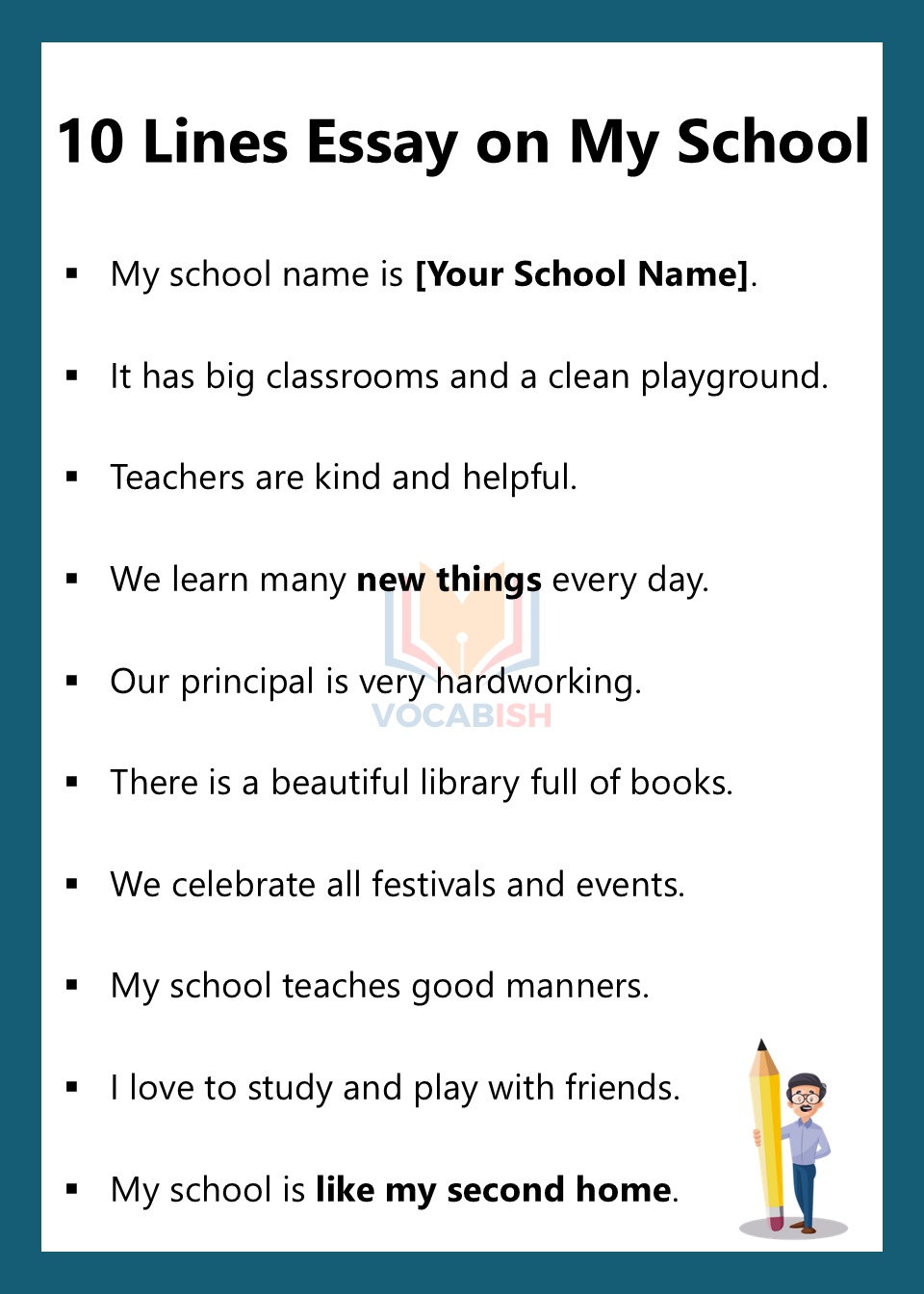 Writing short essays helps you express clear ideas and improve writing confidence. These 10-line essays cover everyday life topics in easy English. Keep practicing, use these examples as models, and soon, writing in English will become fun and natural for you!