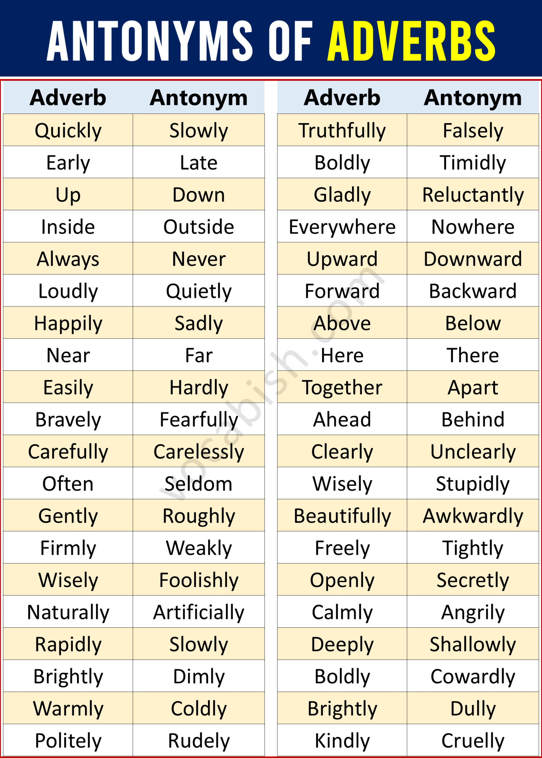 Adverbs Opposite Words List