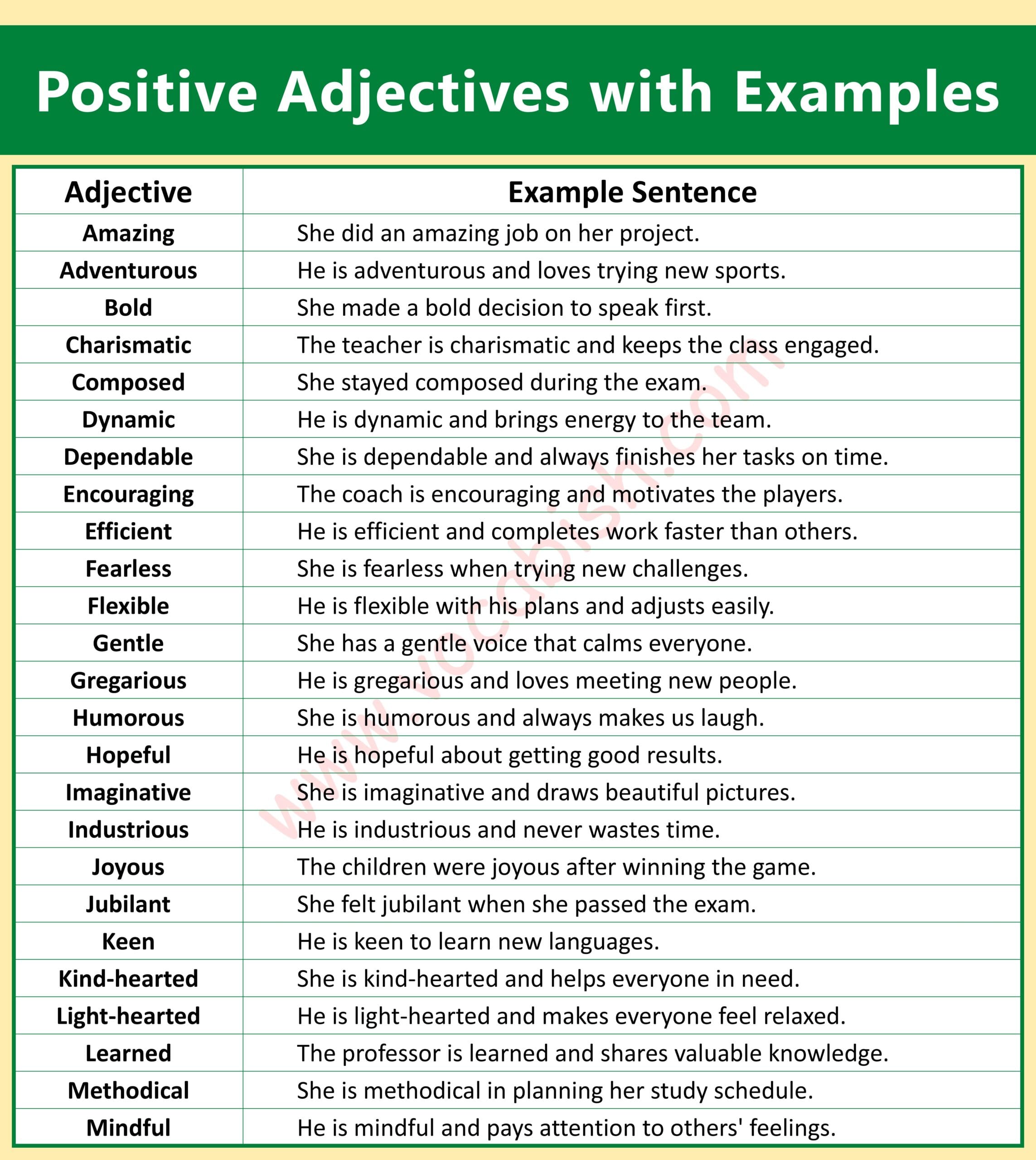 Positive Adjectives with Examples