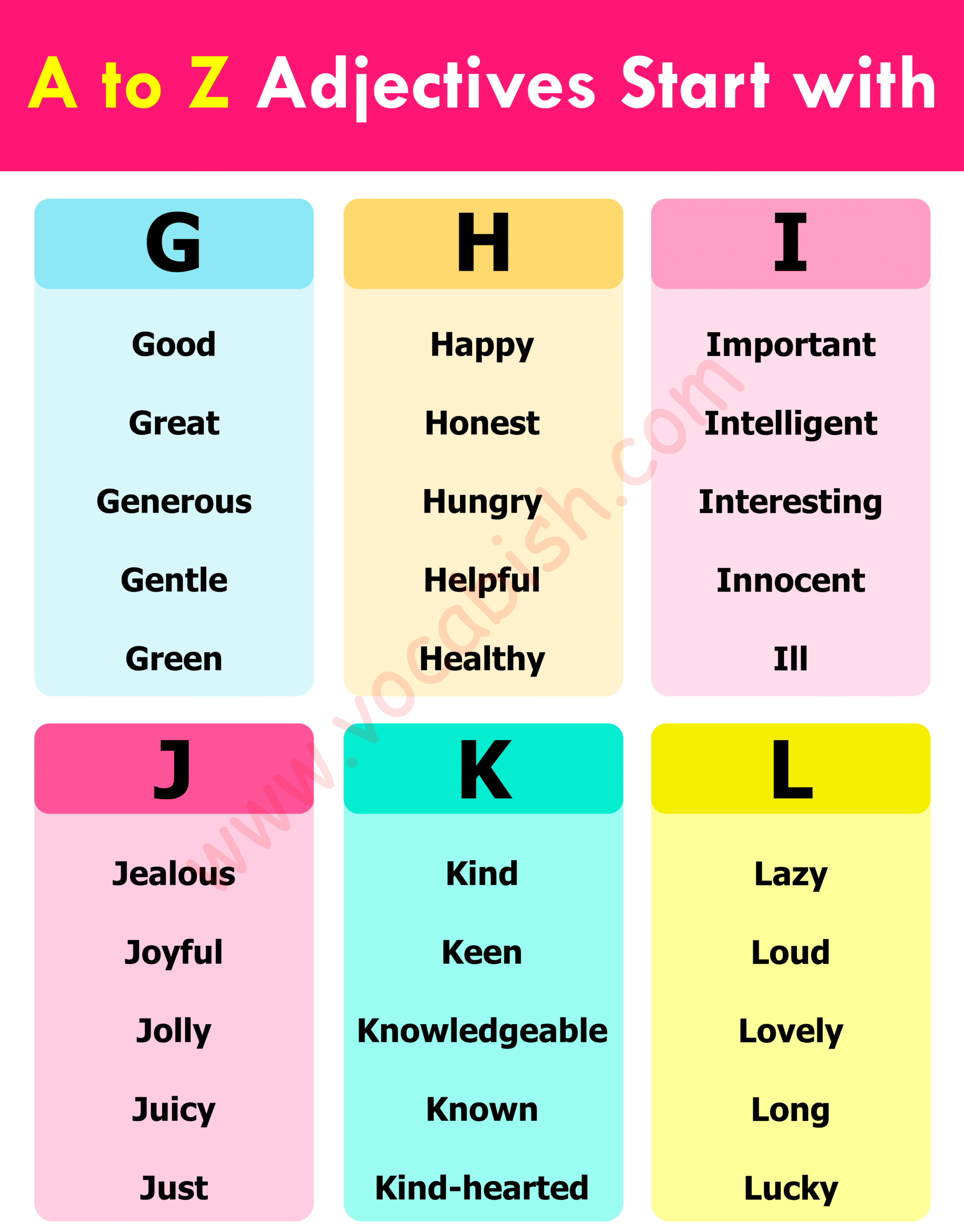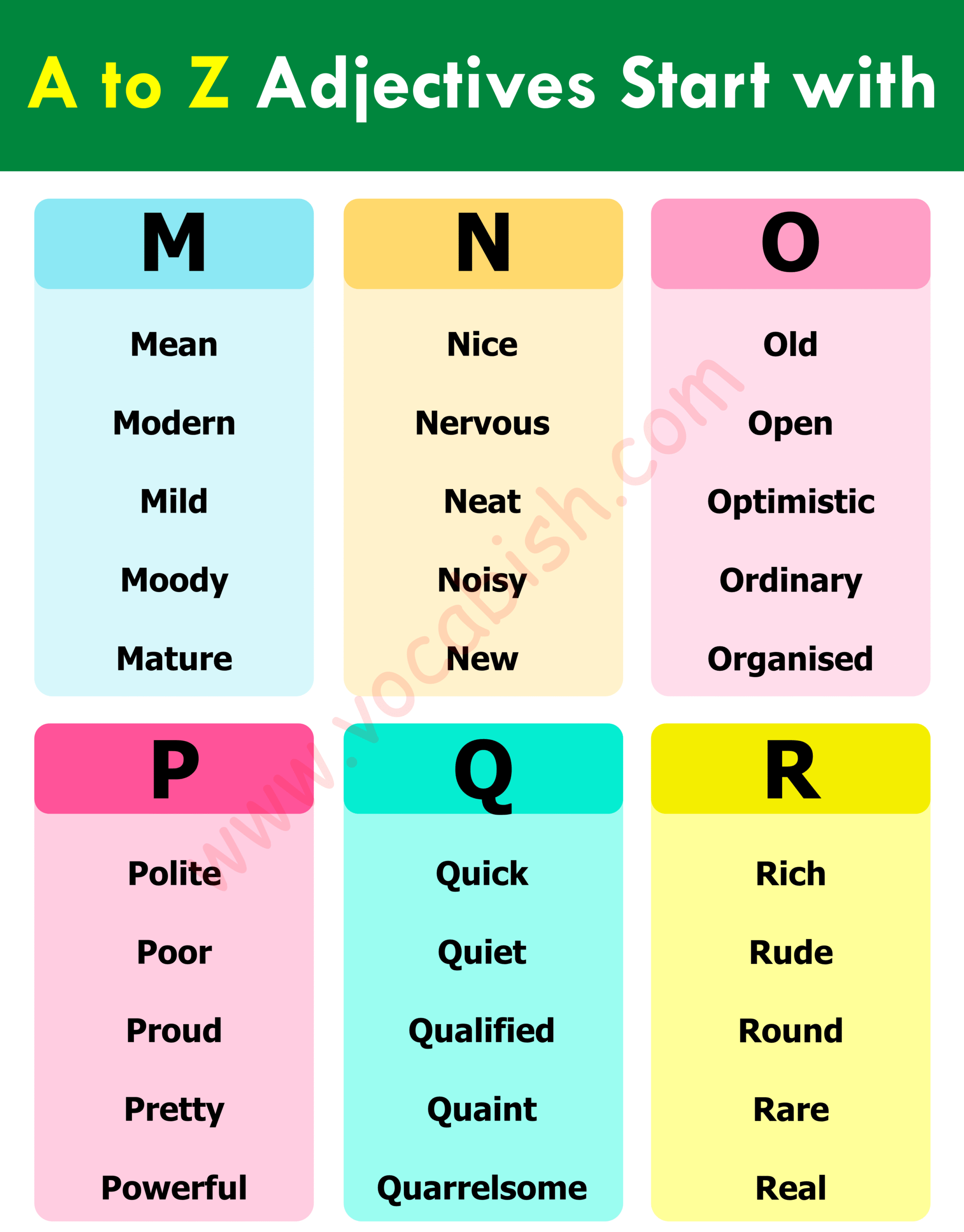 A to Z Adjectives in English
