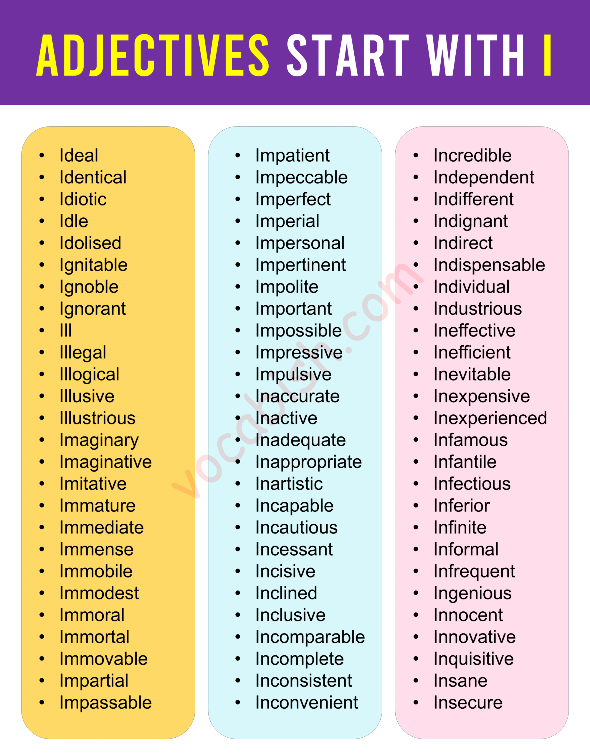 115 Adjectives that Start with I | Complete List of i Adjectives