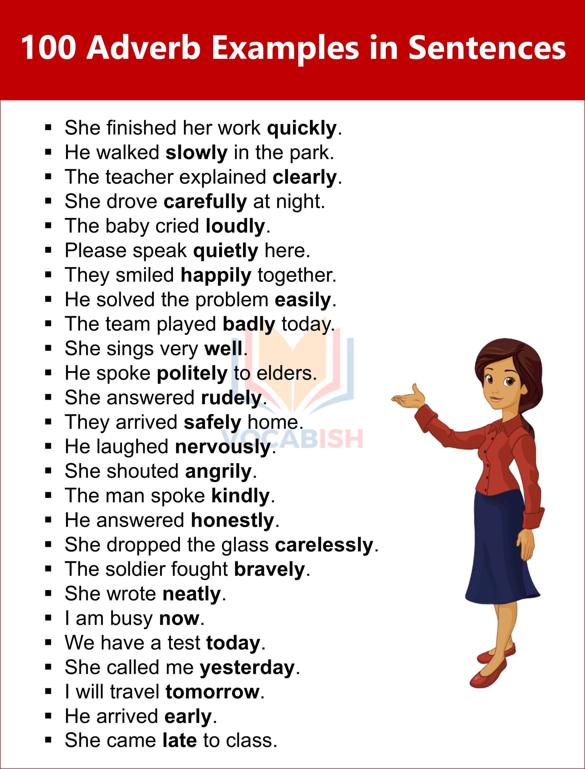 100 Adverb Examples in Sentences