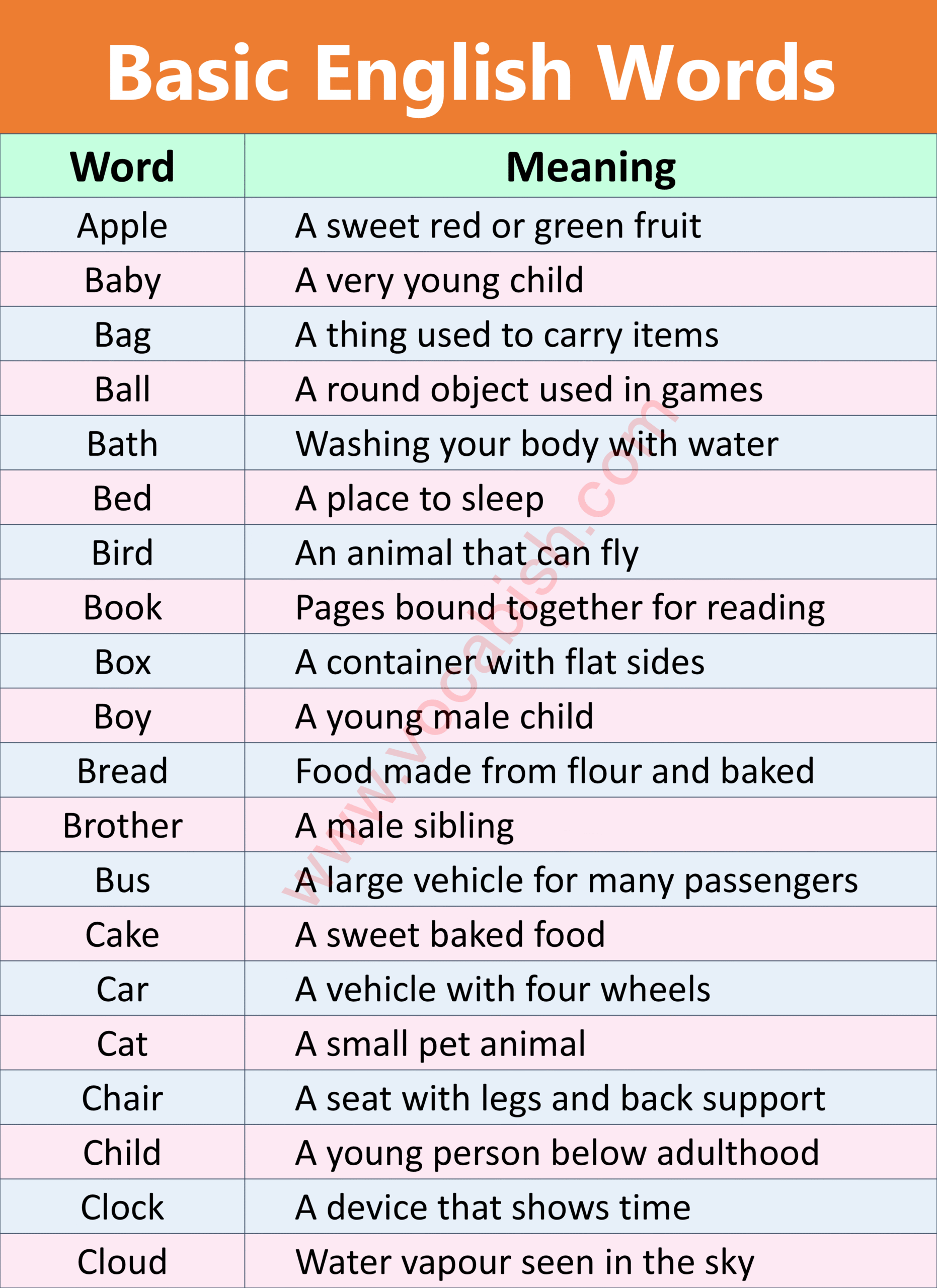 150+ Basic English Words with Meanings