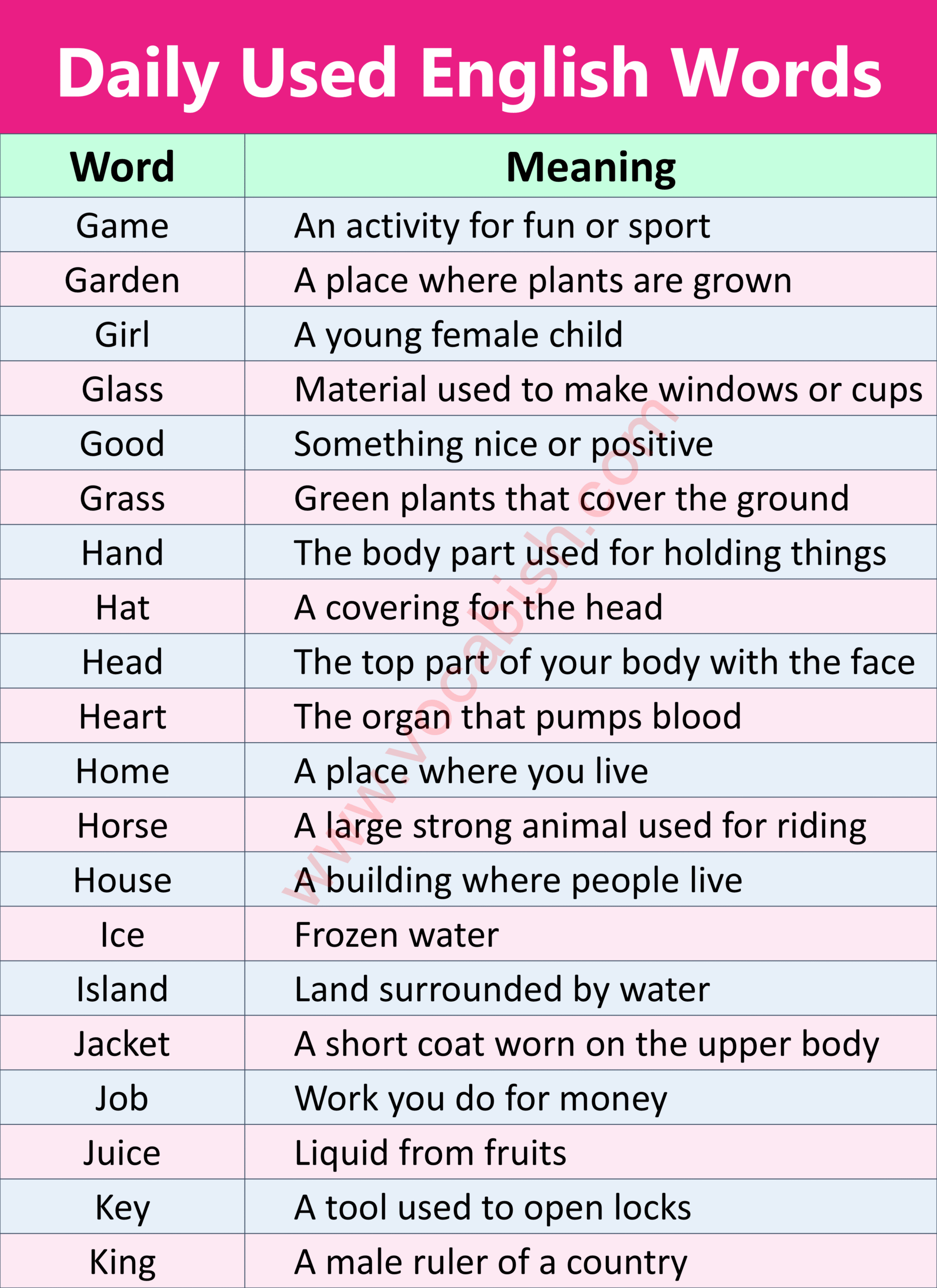 Daily Used English Words with Meanings