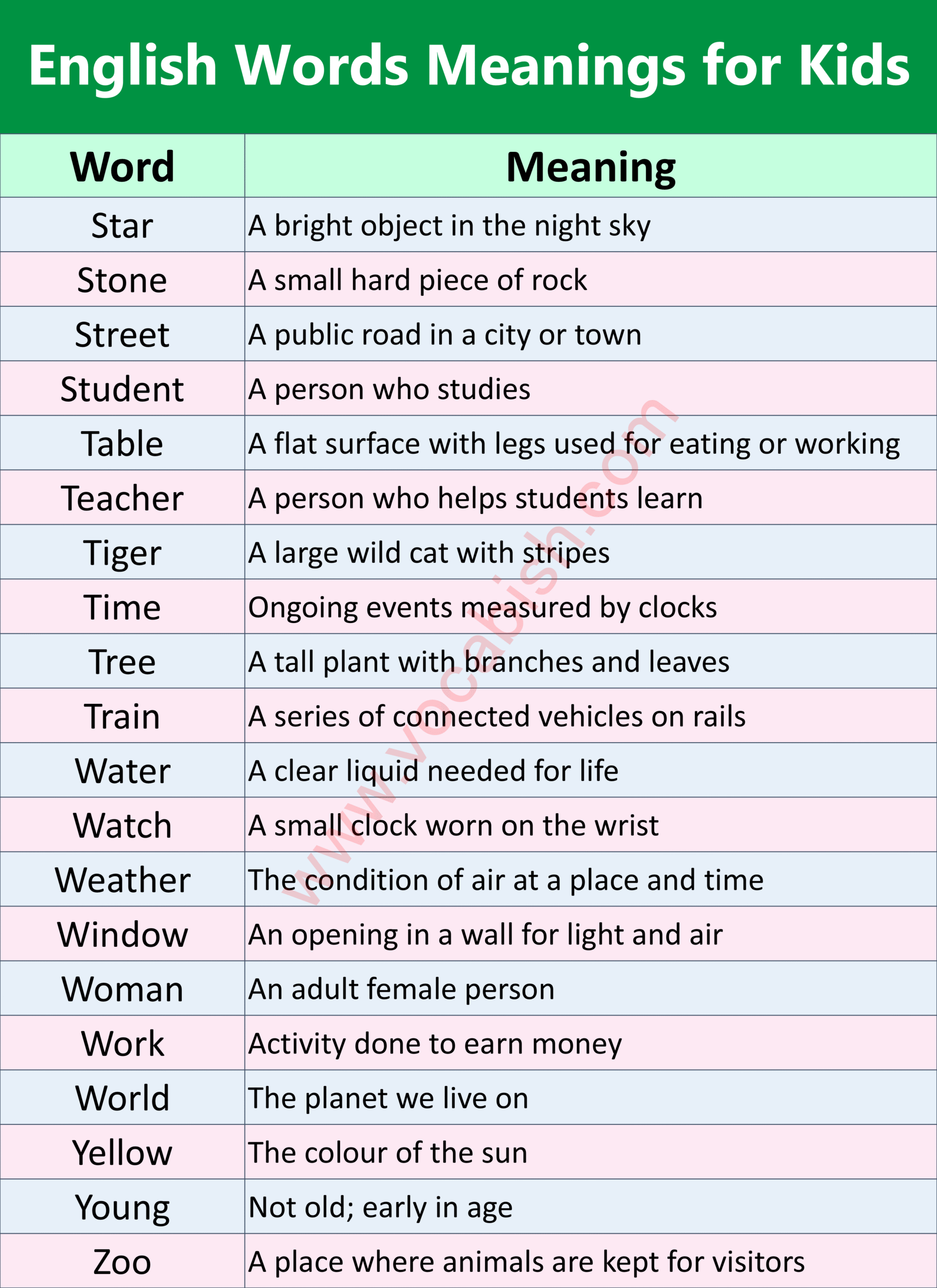 English Words Meanings for Kids