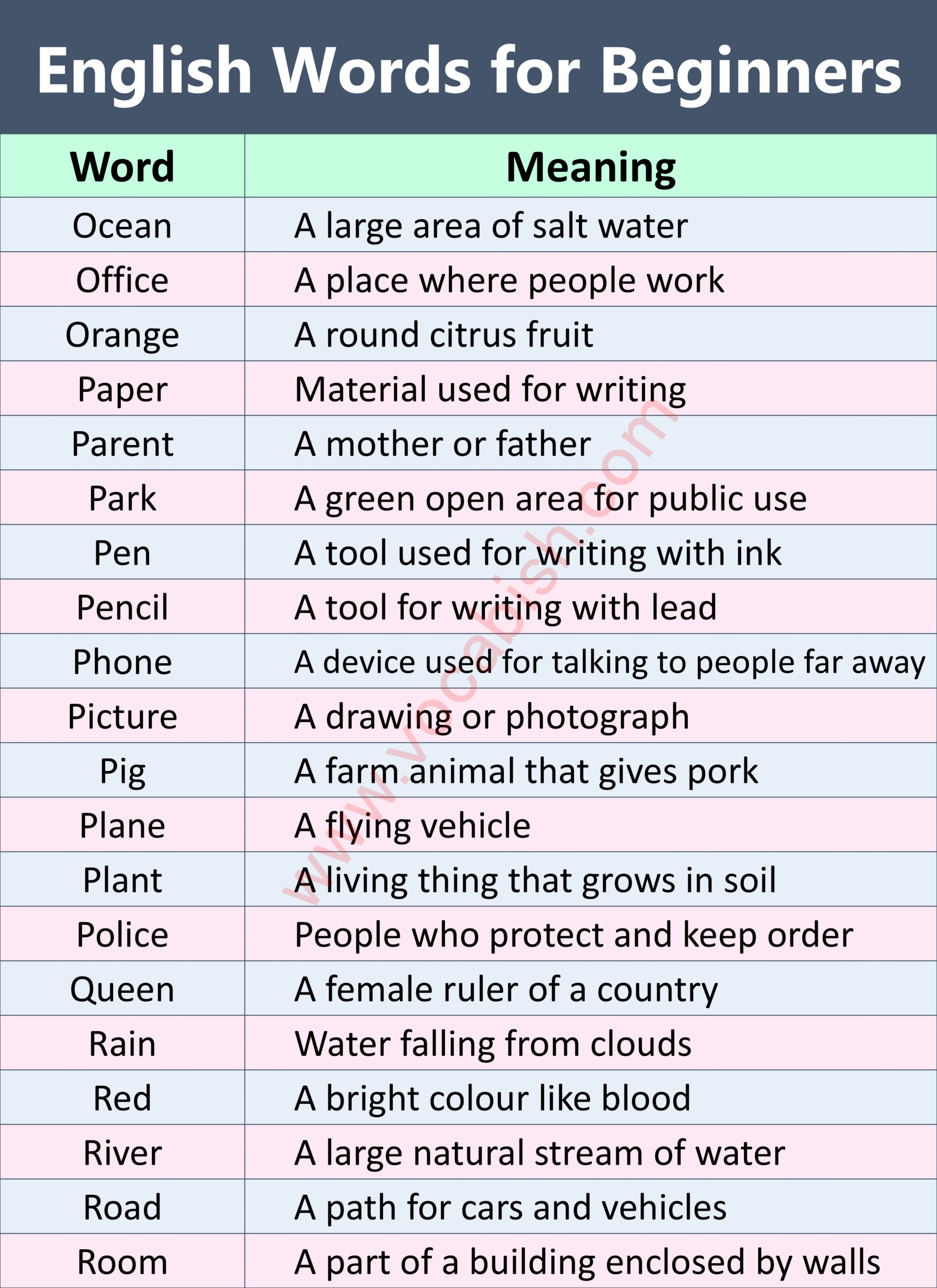 English Words Meanings for Beginners