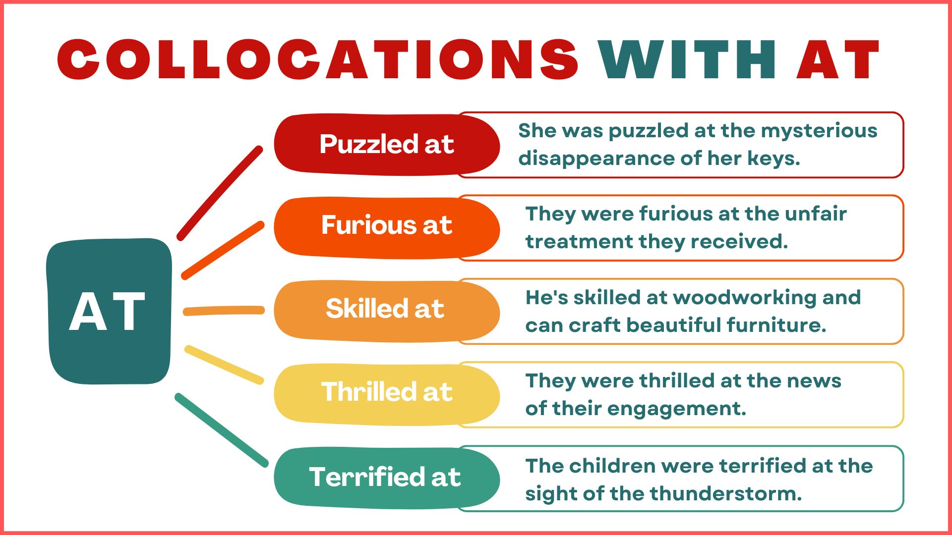 In this blog post, you will learn 20+ common collocations and expressions with the preposition “at.” Collocations are words that naturally go together, and knowing them helps you use English more accurately and confidently. By understanding these expressions, you can improve your reading, writing, listening, and speaking skills, and communicate in a more natural way in everyday situations.