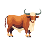 An ox is a trained cow or bull used for ploughing fields and pulling carts. It is very strong and hardworking.