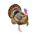 The turkey is a farm bird kept for meat and eggs. It has a large body and makes a loud gobbling sound.