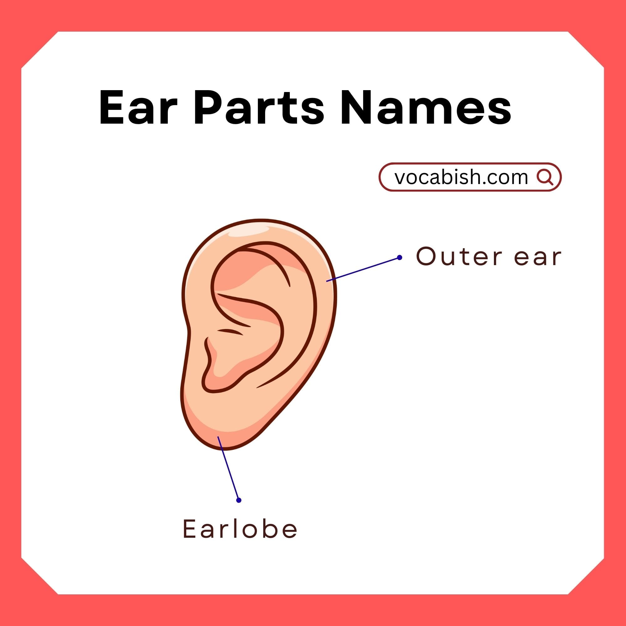 - Outer ear: Visible part outside the head