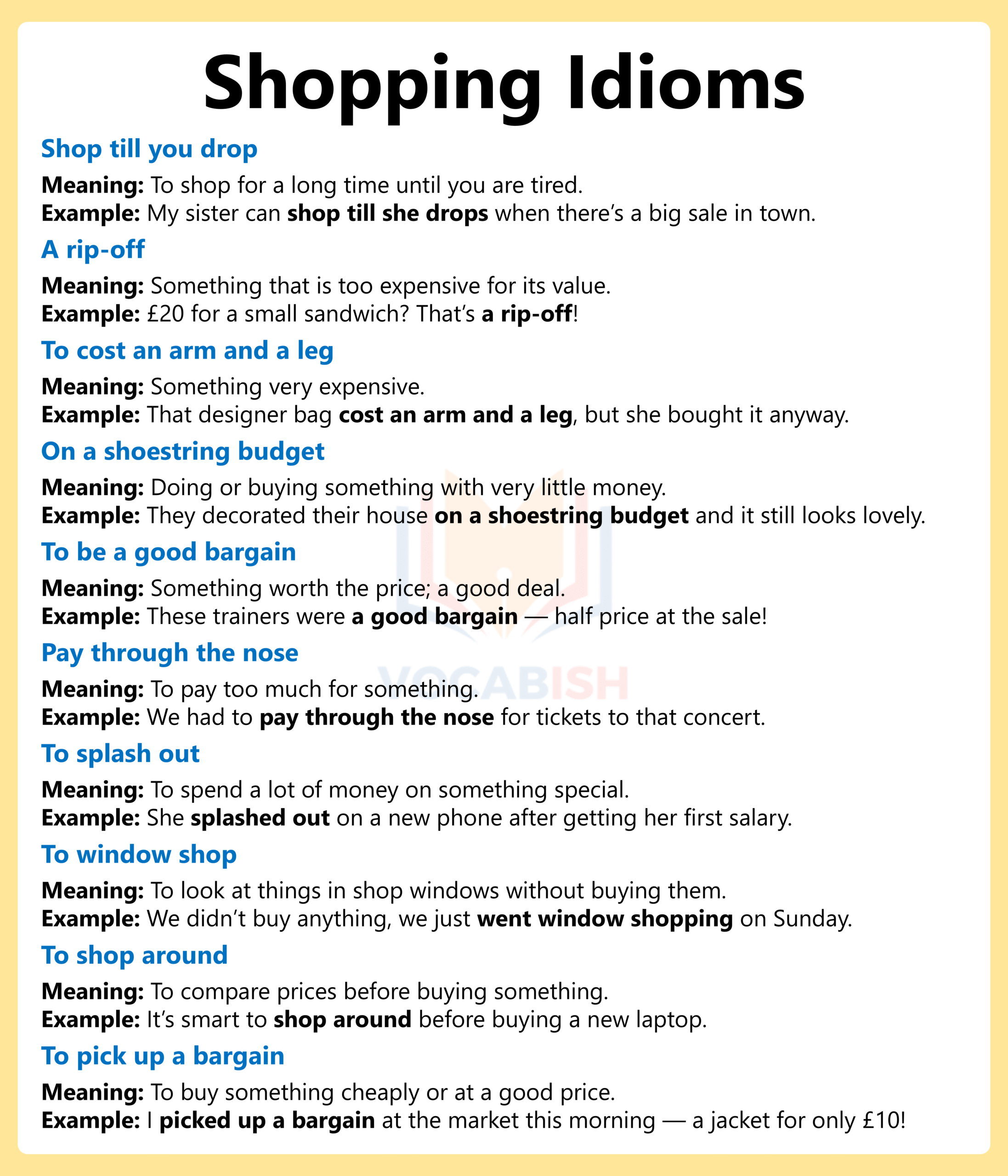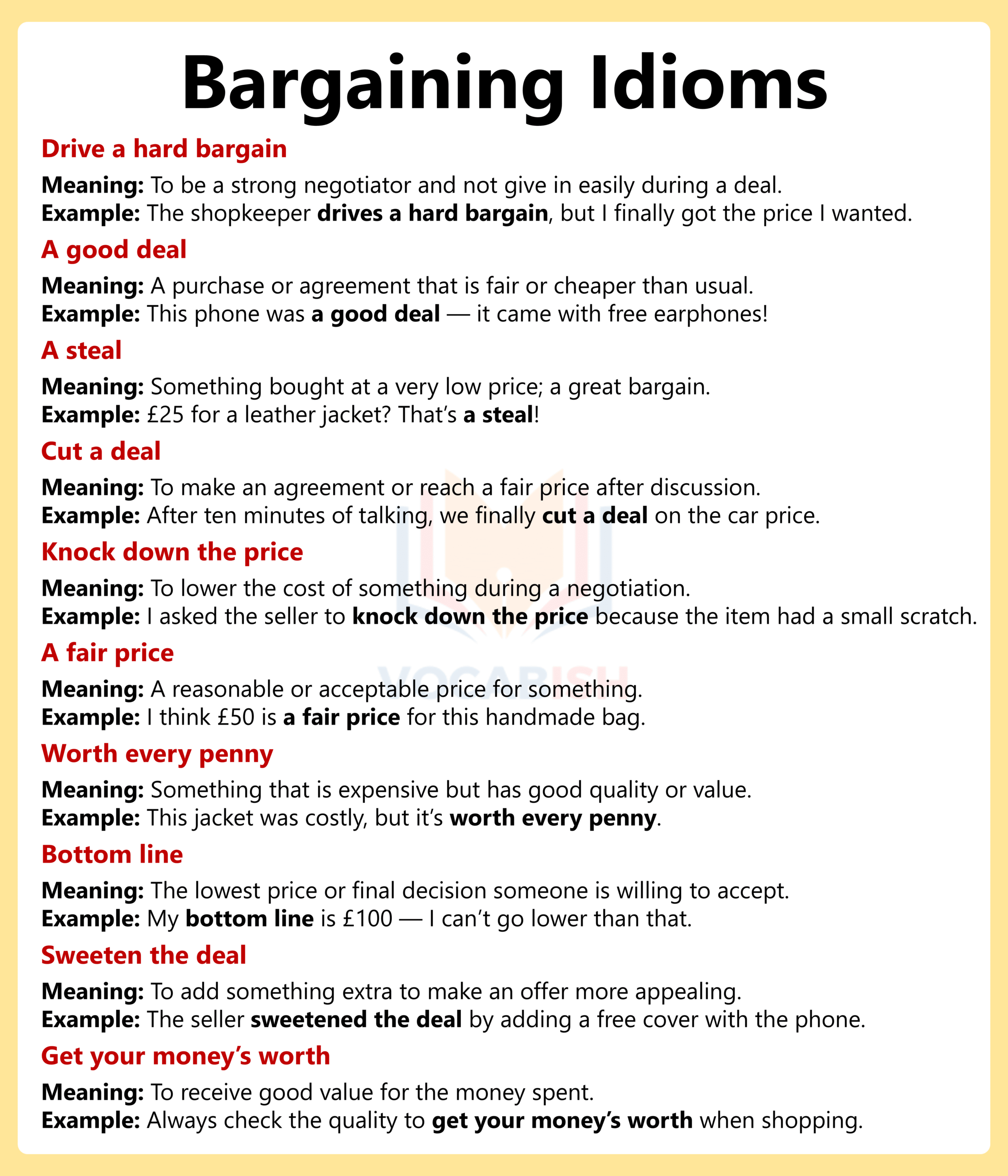 Learning these phrases helps you communicate clearly, understand prices, and negotiate politely while shopping in English-speaking countries or online stores. It builds your daily conversation skills.