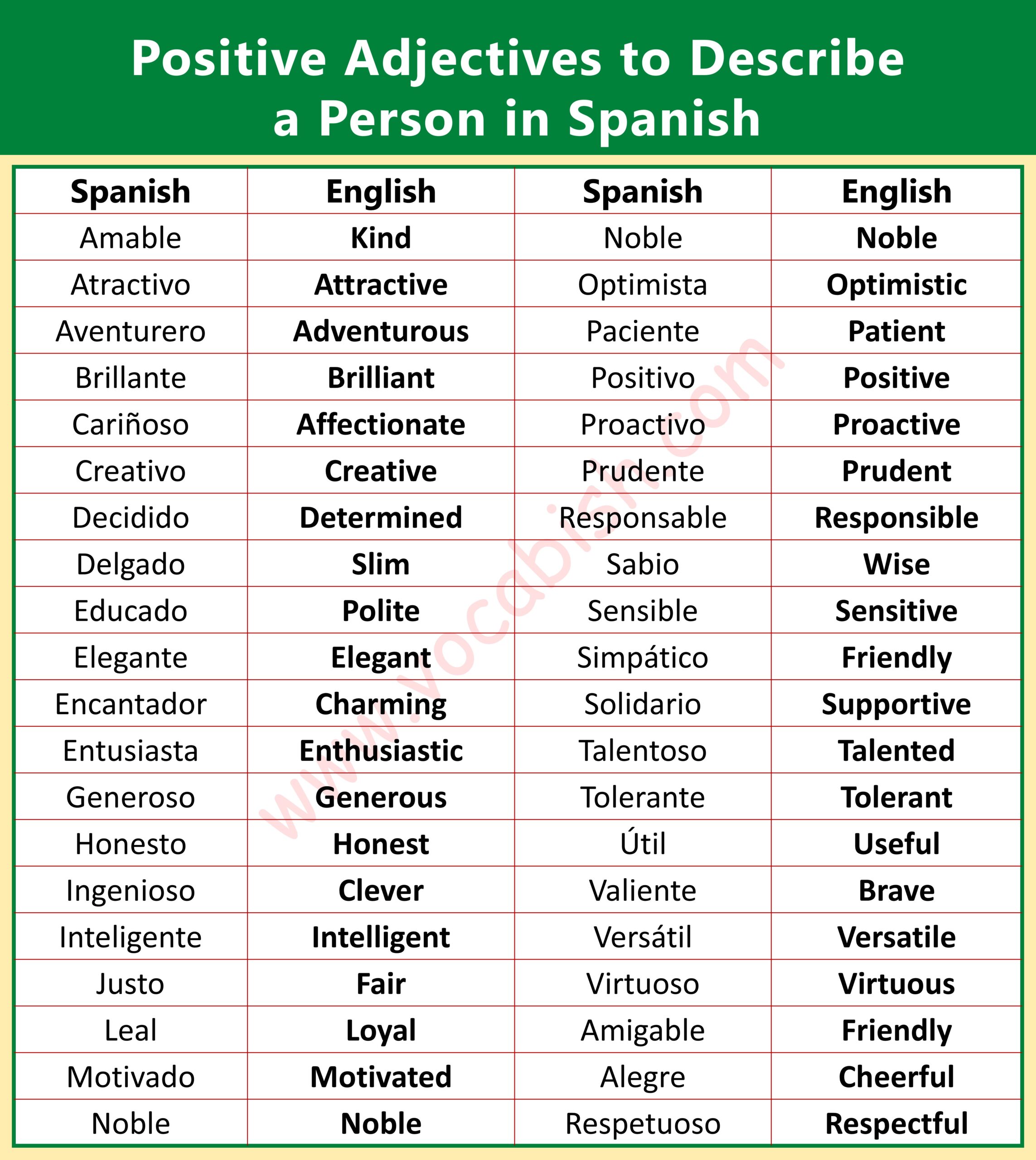 A to Z Positive Adjectives to Describe a Person in Spanish