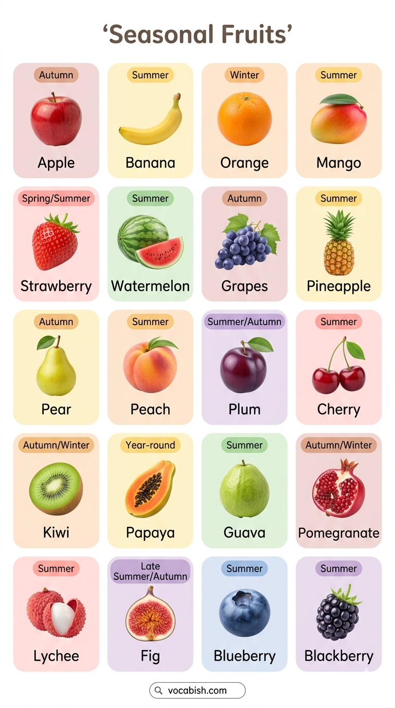 Common Seasonal Fruits in English with Pictures