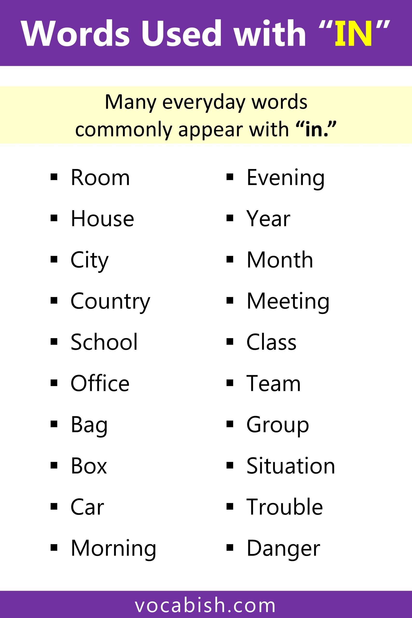 Important vocabulary words used with “in”:
