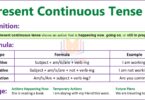 | Future Continuous | Subject + will + be + Verb + ing | She will be studying at 8 PM. |