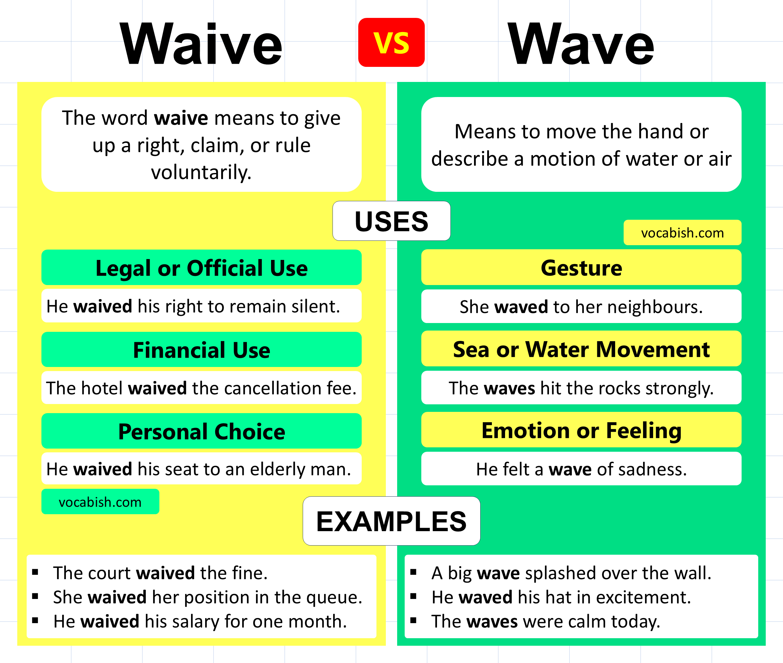The words “waive” and “wave” sound the same but have very different meanings and uses. Knowing when to use each one is important for writing and speaking clearly in English. This guide explains both words with examples, differences, and easy ways to remember them.